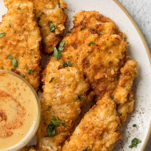 Chicken breasts seasoned in 11 herbs and spices, breaded and baked. This appetizer comes with choice of BBQ, Buffalo, or ketchup dipping sauces