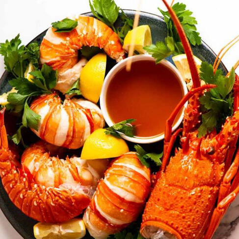 Lobster plate served with optional toppings of Lemon butter sauce, buttered wine, or any sauce of your choosing. Also comes with a dipping sauce of your choosing, and garnished with lettuce and lemons.
