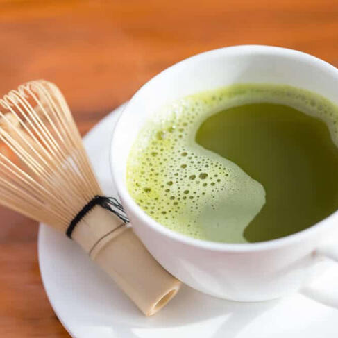 A powder, finley ground from processed shade-grown tea leaves, served in hot water. Grassy and slightly bitter, it has a strong umami (savory like broth and cooked meat) taste.