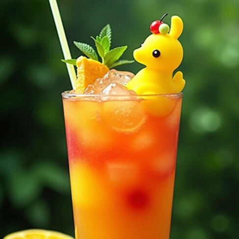 A alcoholic drink made with orange, pineapple, and cherry grenadine mixed with vodka, giving it a kick to a tropic taste. A chocobo carved from a pineapple on a stick is placed in the drink.[Brought over from The Steadhal Resort]